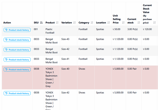 প্রতিটি প্রোডাক্টের বিক্রয়/স্টক রিপোর্ট